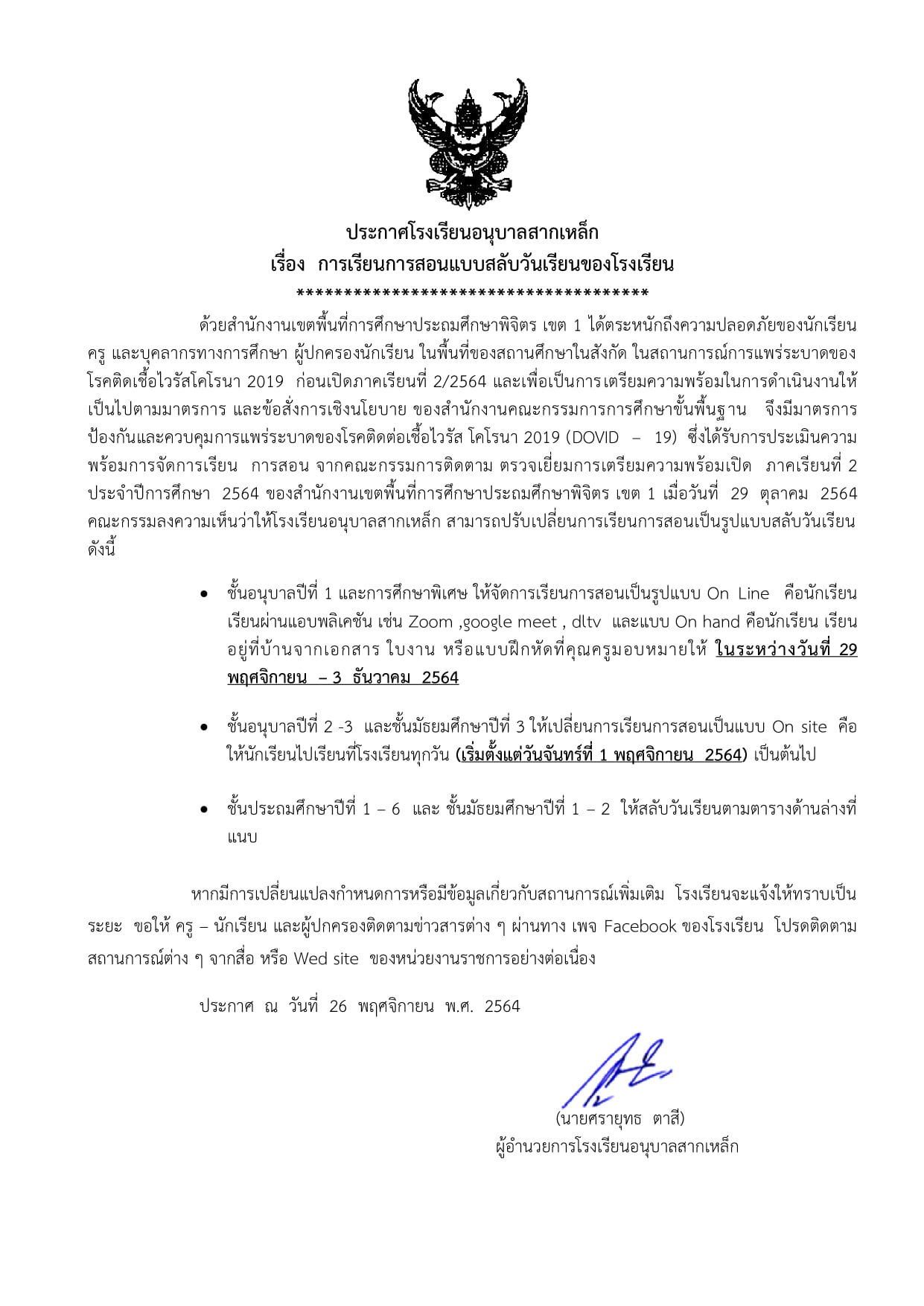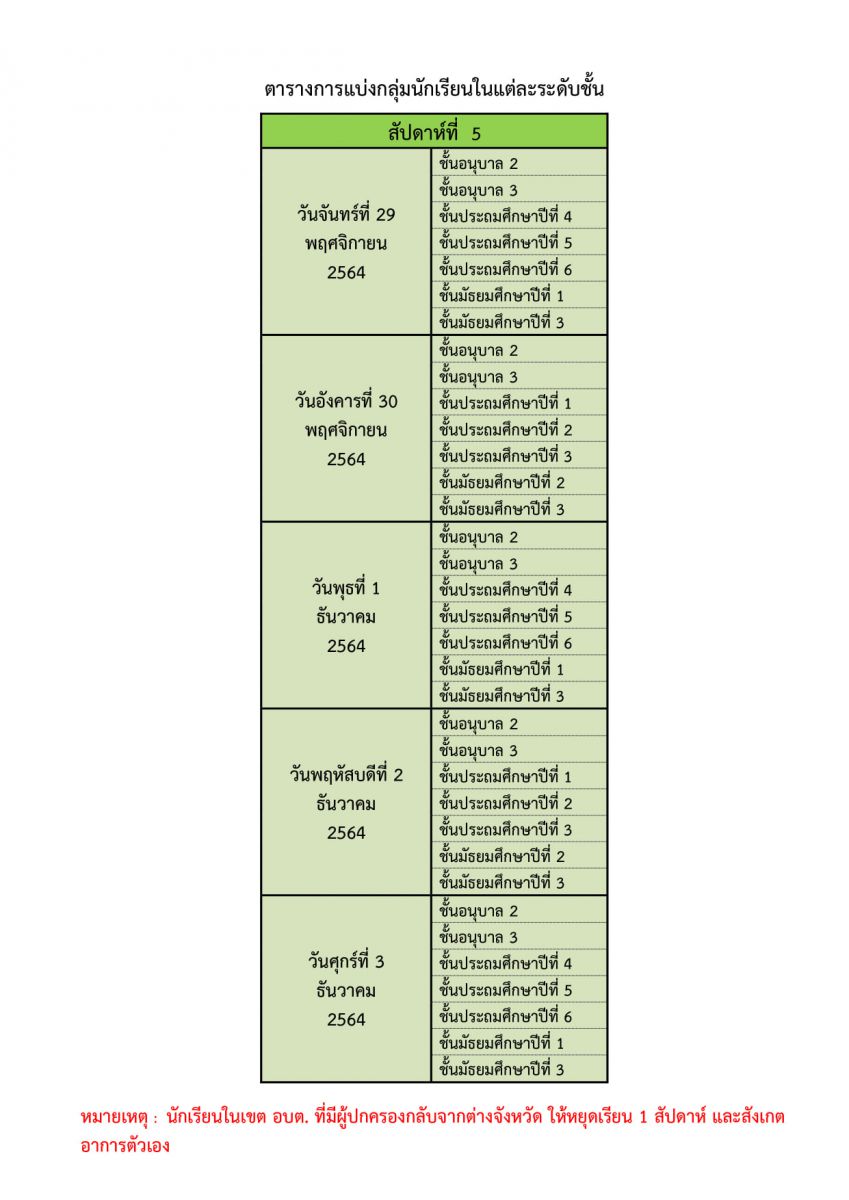 การเรียนการสอนแบบสลับวันมาโรงเรียน